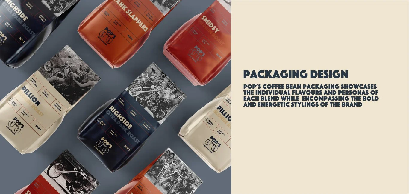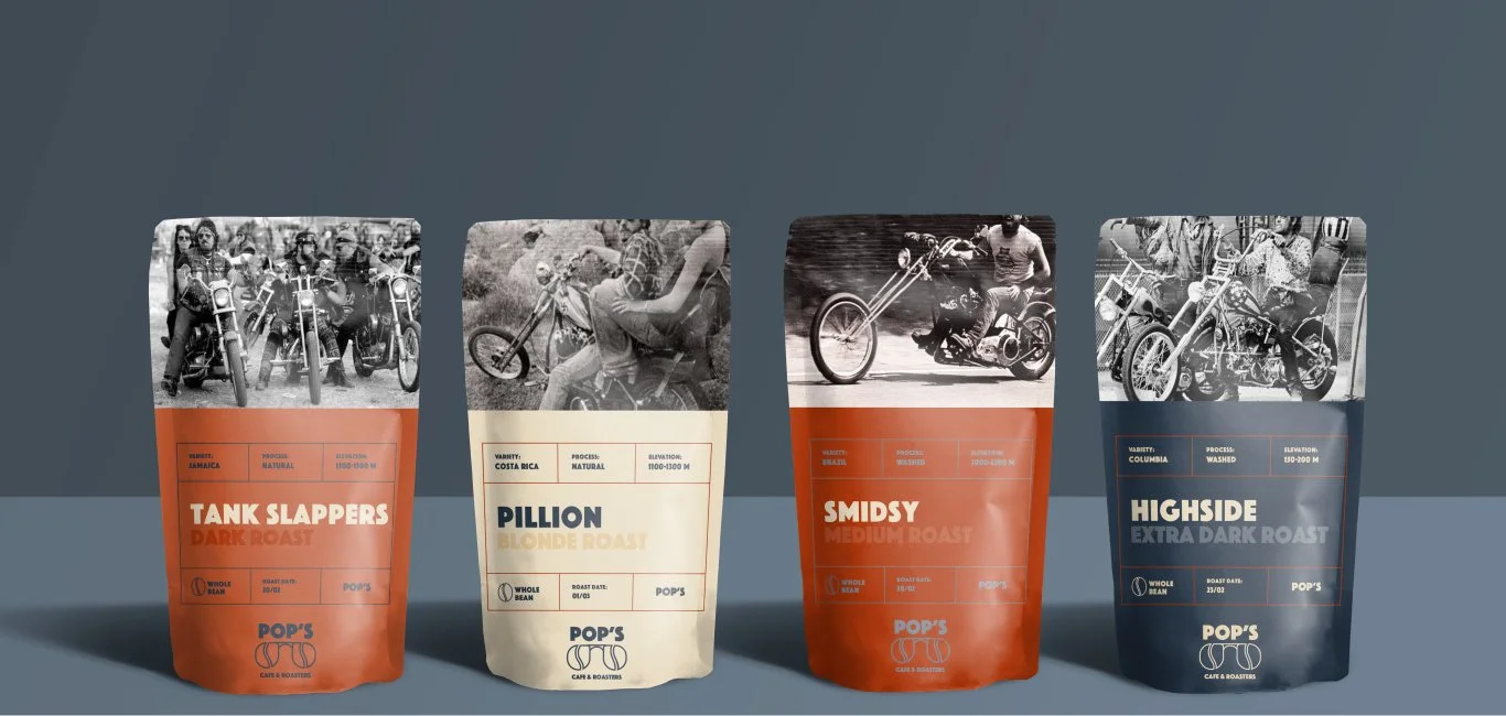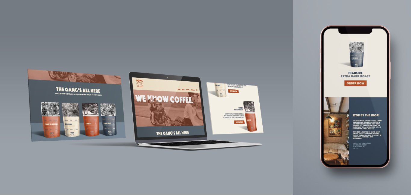 The Design: I’m always drawn to knowing the story and people behind a brand so I wanted this small, local shop to be tied to a persona which is how I came up with the fictional character of Pop. Pop is a motorcycle loving, rough around the edges, old-school guy who found his passion in roasting coffee and getting to know his community. After creating Pop, the rest of the brand fell into place. I had so much fun working on this project and love how it turned out.